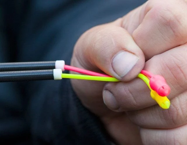 It comes with a top two Carp Kit in the pole plus a spare top two Carp kit. These kits measure approximately 2.3m and are ready to elasticate straight from the bag. As they come, the Carp Kits will accept a 4.7mm Super Slick PTFE Bush (3.2mm internal diameter). Two of these bushes are supplied, which are ideal for light/medium solid elastics and perhaps even up to yellow 10-12 Carp Bungee hollow elastic or equivalent.